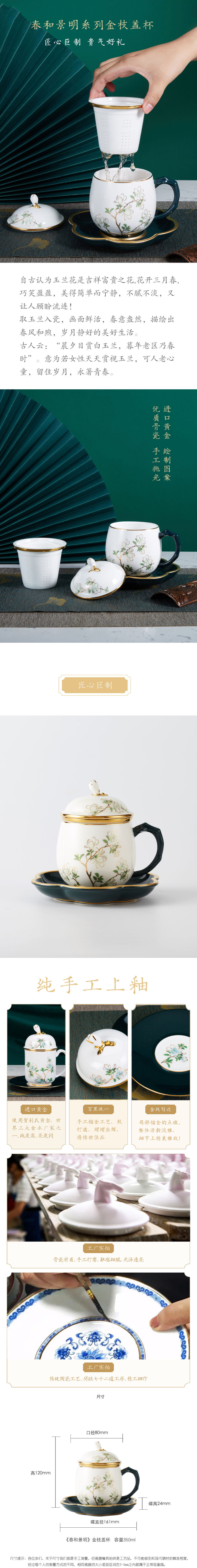 春和景明带盖骨瓷茶杯